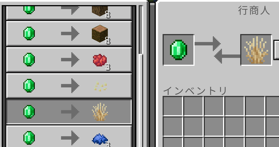 行商人から1エメラルドで背の高い乾いた草(背の高い枯れ草)を手に入れることが可能