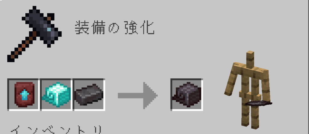 ネザライトのオウムガイの鎧に関してはダイヤモンドのオウムガイの鎧に鍛冶台を使いネザライトインゴットを合成することで作ることができます。